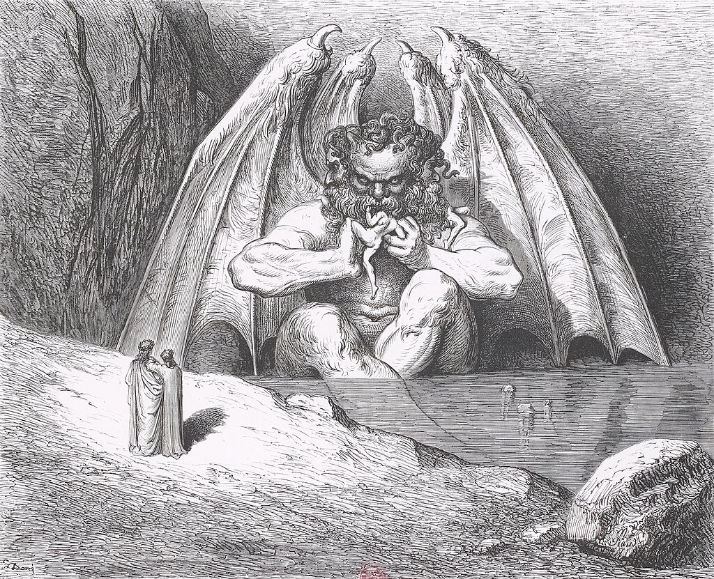 The famous 14th-century poem The Divine Comedy by Dante Alighieri vividly portrays Hell as a series of descending circles, each reflecting a specific sin and its corresponding punishment. At its deepest level lies Dante’s chilling vision of Satan, so far removed from God’s light that Hell is freezing rather than burning (I guess super cold is a burning sensation too). Trapped in a frozen sea, Satan endlessly flaps his wings, creating an icy wind that perpetuates the freezing. This stark and haunting depiction captures the profound desolation of ultimate separation from the divine. Below is an illustration by Gustave Doré that brings this scene to life.