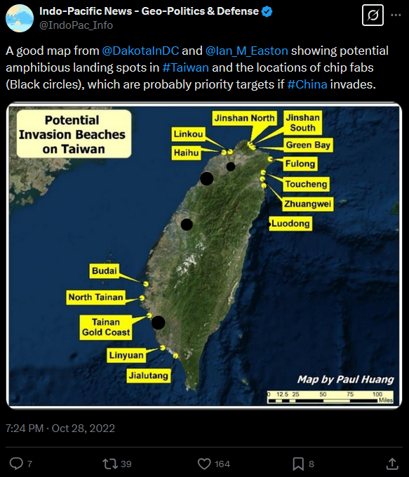 Most research of war gaming of the Taiwan invasion/embargo showed likely win for the Western coalition defeating the Chinese effort to capture the island, albeit with significant losses. I.e. in most games the United States win but loses its navy and a large chunk of its air force.